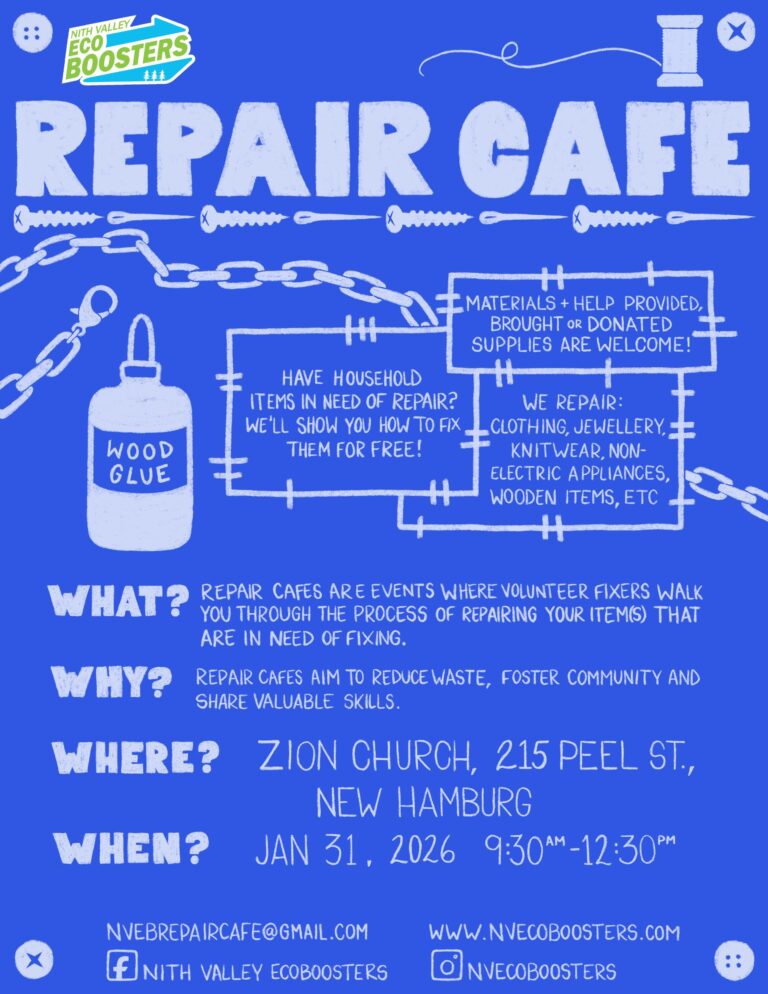 Repair Cafes are events where community members can bring broken items, and volunteer ‘fixers’ will walk them through repairing them. NVEB’s Repair Cafe will have fixers for small household mechanical and woodworking repairs, mending for clothing, knit and crochet items, jewelry, and book repairs. Most materials, tools, and safety items will be provided by the Repair Cafe. However, if attendees have an item requiring specialized materials/tools, we encourage you to provide them yourself.
